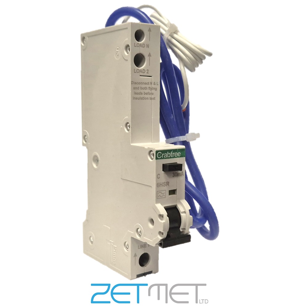Crabtree Loadstar 6HSR20/30C 20 Amp C Curve Single Pole 30mA 230V Type A RCBO