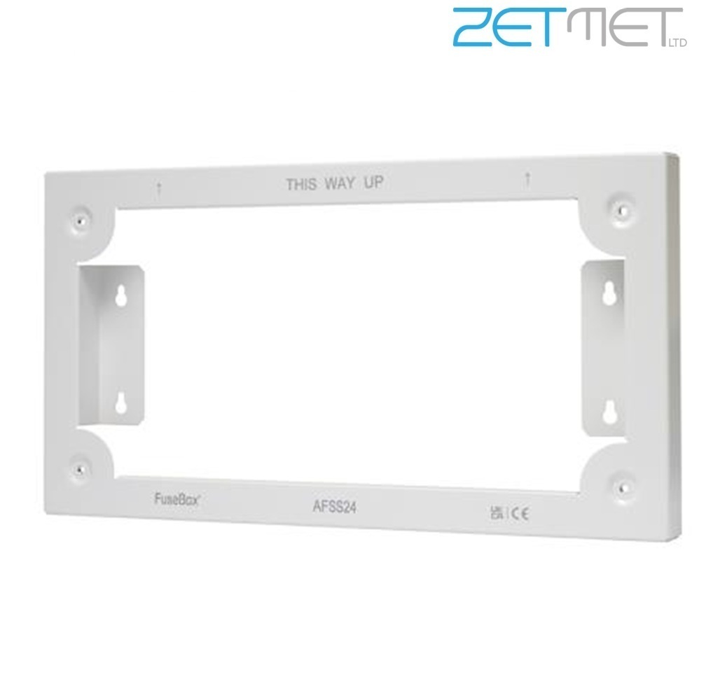 Metal Surface Spacers brought to you by FuseBox. The AFSS24 is a surface consumer unit spacer designed to fit 24P dimensions and provides 30mm clearance. It features mini trunking top and bottom knockouts, making it ideal for routing surface cables neatly into the rear of the consumer unit. Quick and easy to install. This is the FuseBox AFSS24 24 Module Metal Surface Spacer Stand Off Plate.