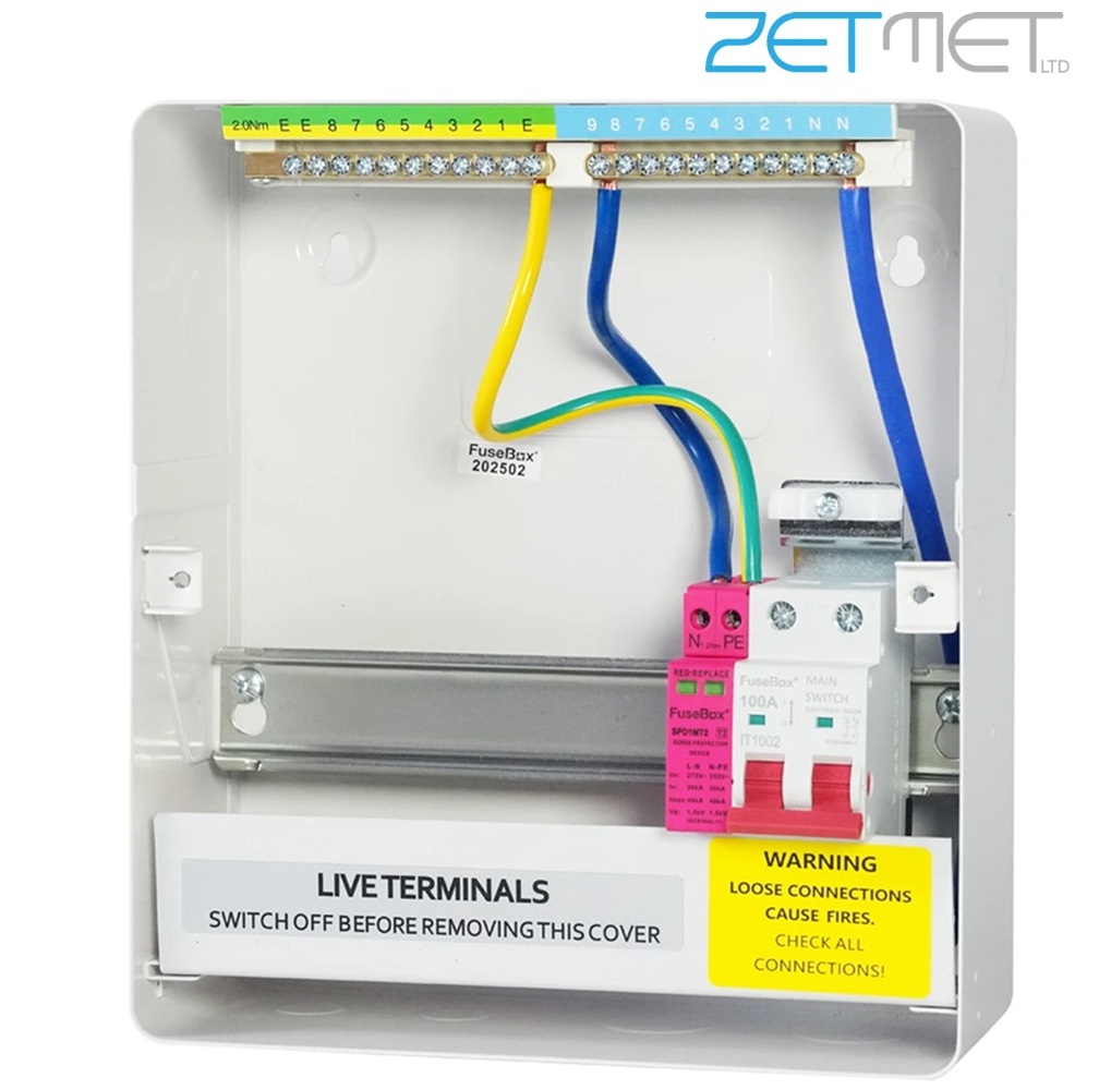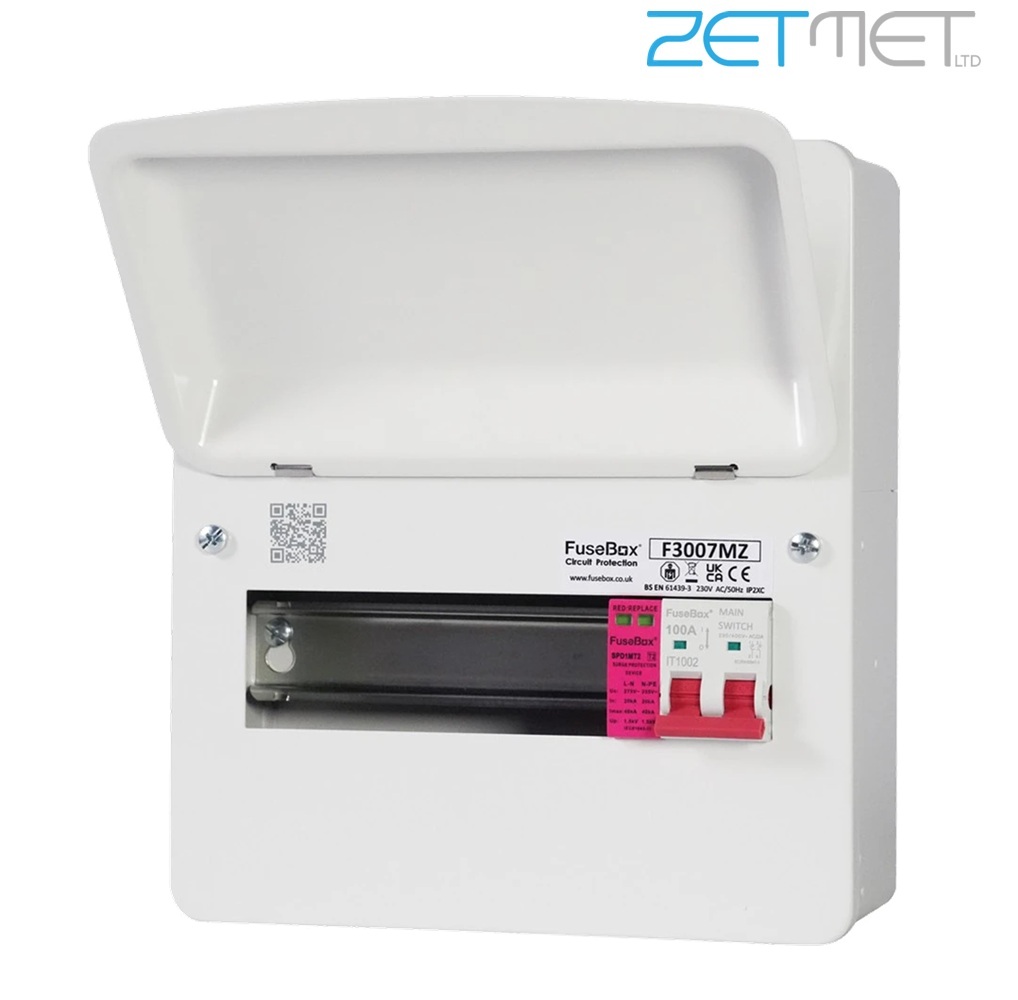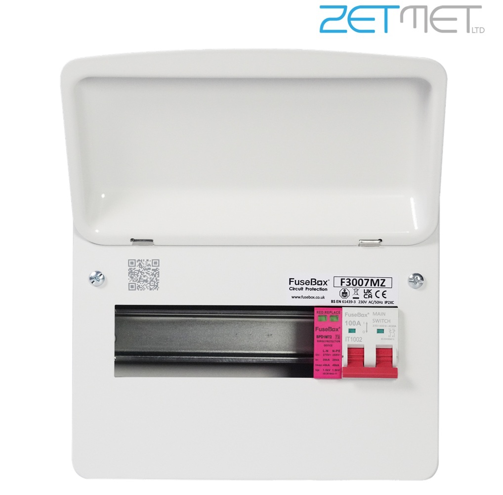 FuseBox F3 Series F3007MZ 7 Way 100A Main Switch Metal Consumer Unit + T2 Surge Protection