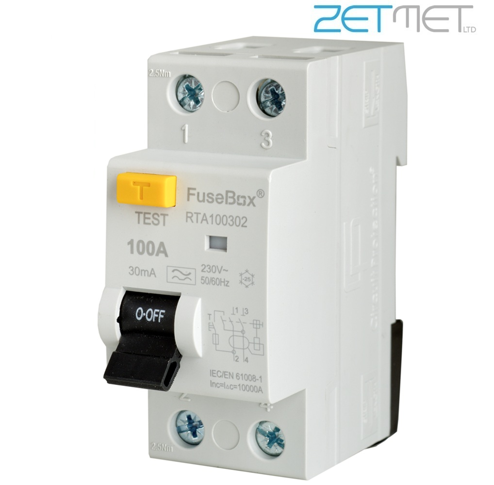FuseBox RTA100302 100 Amp Double Pole Type A RCD 30mA 230V RCCB