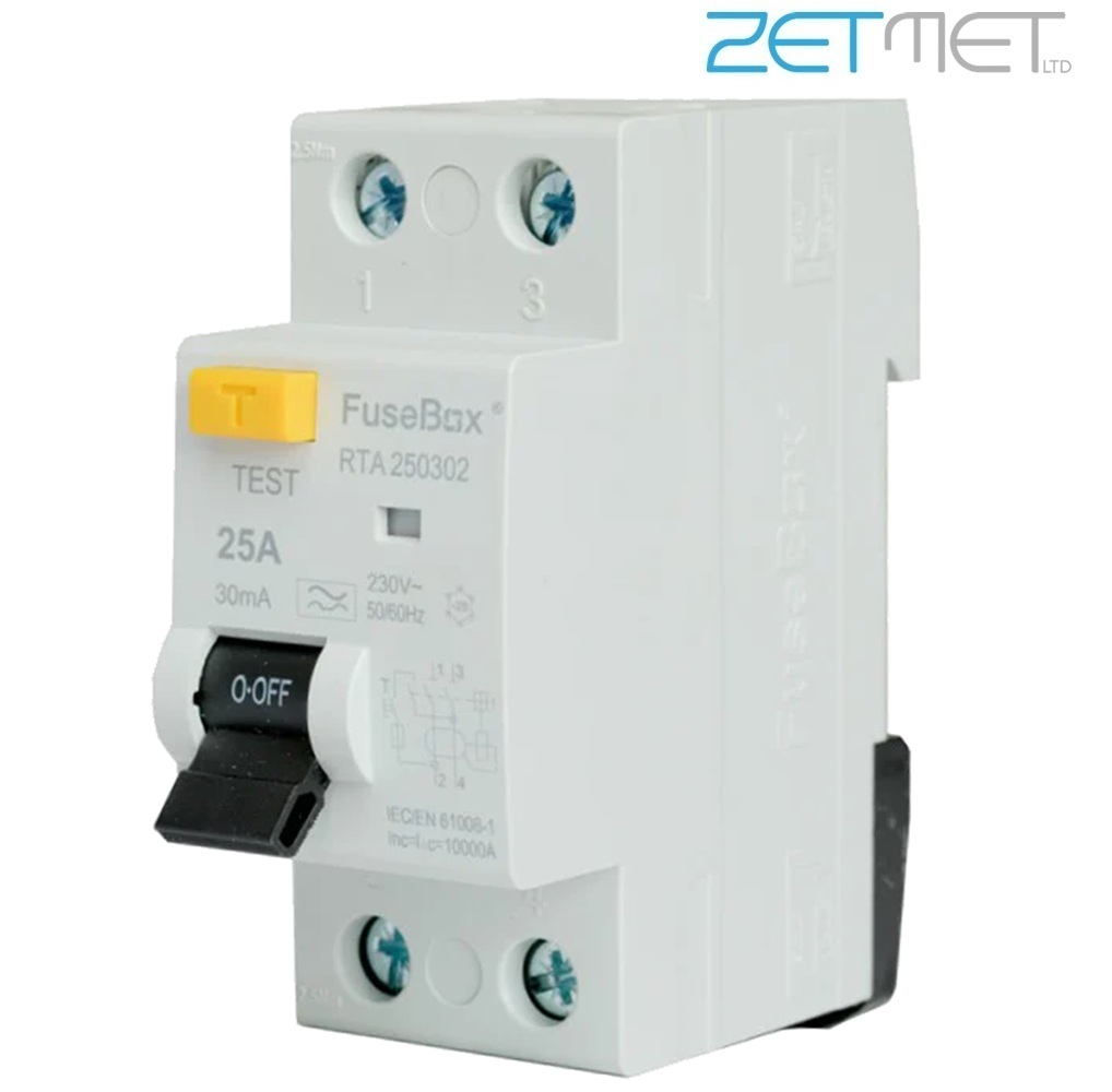 FuseBox RTA250302 25 Amp Double Pole Type A RCD 30mA 230V RCCB