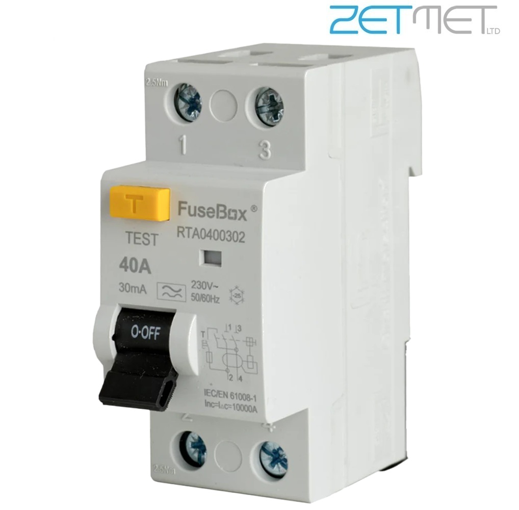 FuseBox RTA400302 40 Amp Double Pole Type A RCD 30mA 230V RCCB