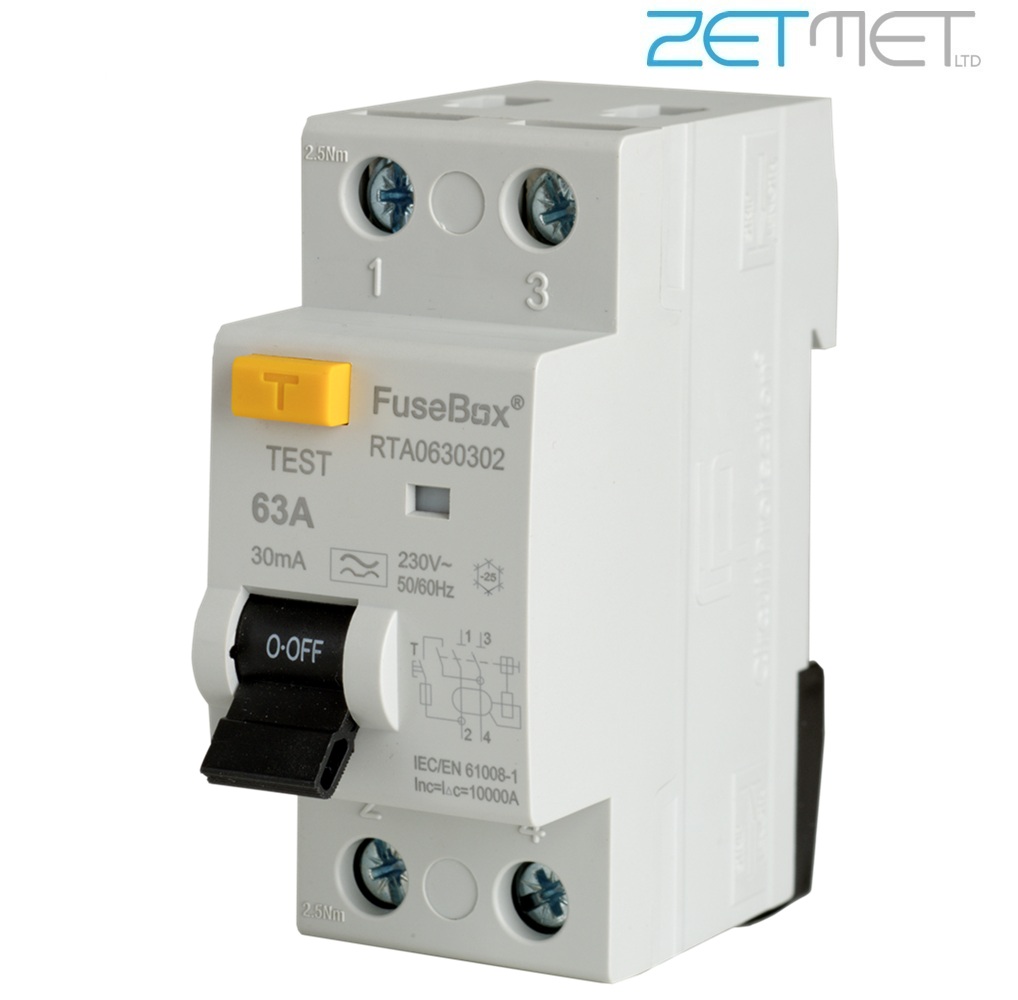 FuseBox RTA630302 63 Amp Double Pole Type A RCD 30mA 230V RCCB