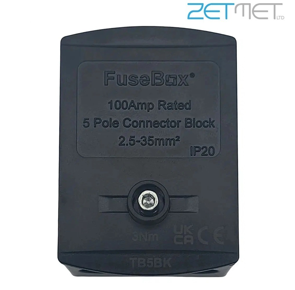 FuseBox TB5BK 100A 5 Way Black Connector Terminal Block