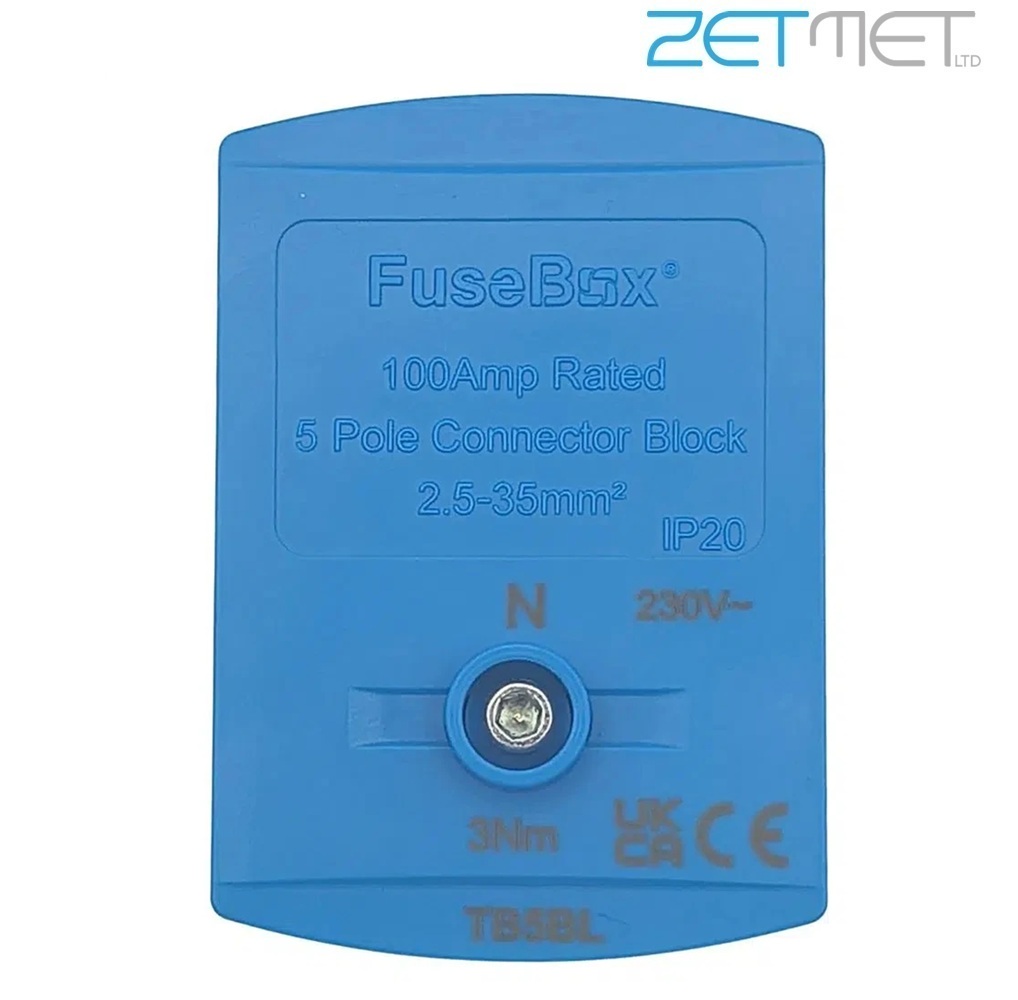 FuseBox TB5BL 100A 5 Way Blue Connector Terminal Block
