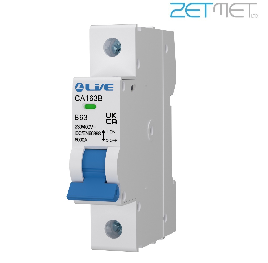 Live Electrical CA163B 63 Amp Single Pole Type B 6kA 230V Miniature Circuit Breaker MCB