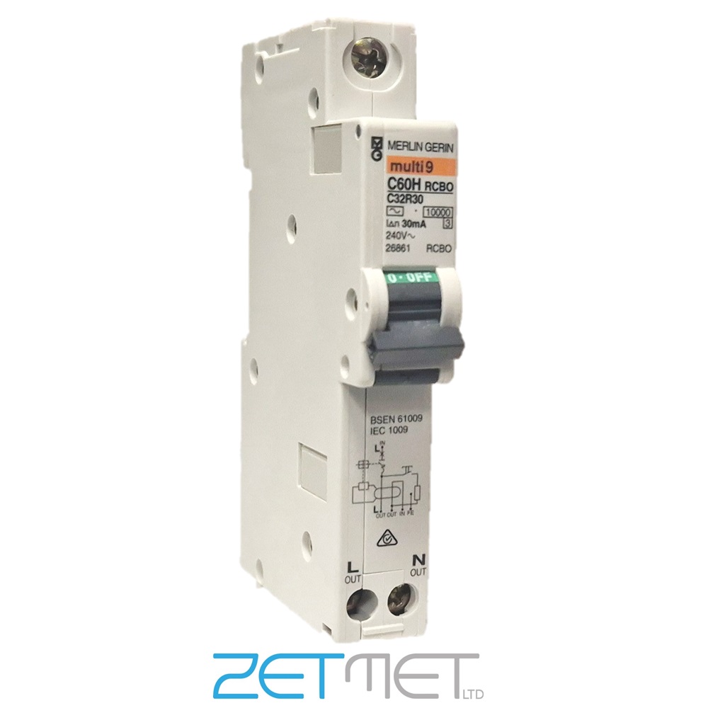 Merlin Gerin Multi 9 C60HC32R30 32 Amp Type C Single Pole 30mA 240V RCBO