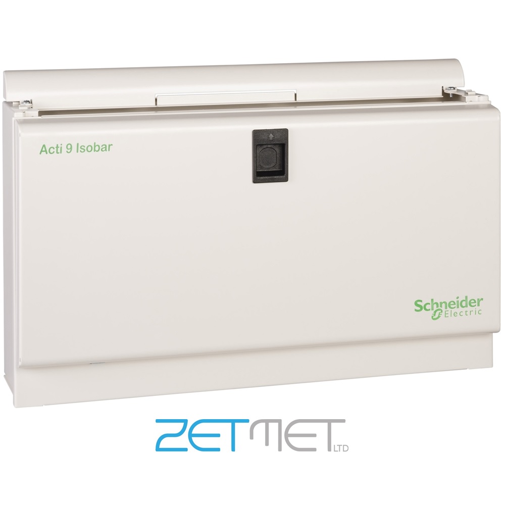 The Schneider SEA9BNEX034N is a steel constructed 17 way extension box for use with Acti 9 Isobar B distribution boards. Designed to increase capacity in an existing Acti9 Isobar B distribution board, each box comes complete 1 row of 17 modules of 18mm, built-in DIN rail, slotted front cover and door. As part of the Acti 9 Isobar B range of distribution it is suitable for use in standard, commercial and industrial applications. This is the Schneider Acti 9 Isobar B SEA9BNEX034N 17 Way Metal Extension Box.